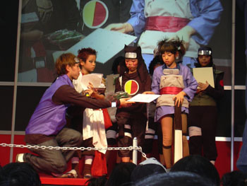 (前回の東京ゲームショウ参照) しかも ‘なりきり大会’審査は終わっているのに この態度 腕組してるヤツ、ポケットに手を入れたままのヤツ… アンタら ホントなりきってるよ!!(笑) |