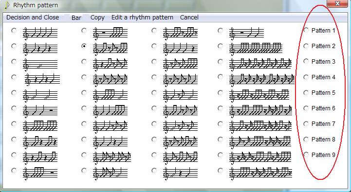 You can get a rhythm pattern by number from "Rhythm pattern" screen.