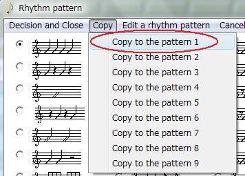 Now, the rhythm pattern which attached the check is copied to "Pattern 1".