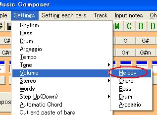Go to Menu->"Settings"->"Volume"->"Melody".