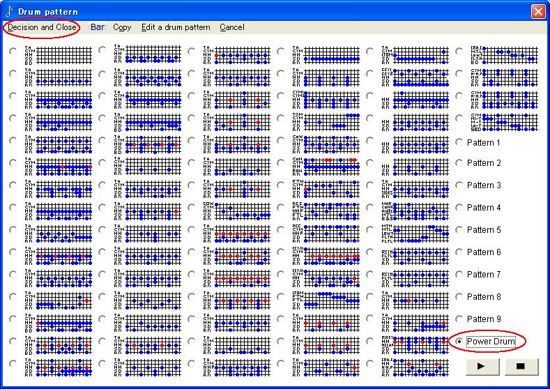 On the "Drum pattern" screen, click "Power Drum" and click "Desicion and Close".