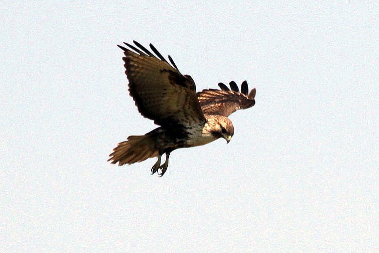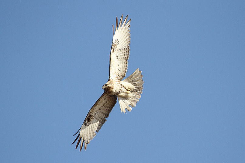 | タカ目タカ科の猛禽類で、留鳥。餌は主に野ネズミ、他に両生類、爬虫類、鳥類も採食する。ノスリとは、”野を擦る”という意味であろうか? 一方、チュウヒは”宙を飛ぶ”の意味だろう。いつの時代からか、これらの鷹の名前をアベコベに間違えてしまったという説もあるようだ。 写真は渡良瀬遊水地。下の三枚の写真は、新赤麻橋(通称鷹見台の手前)の橋の上から撮ったもの。突然の珍客の飛来に、多くのカメラマンが興奮気味にシャッターを切っていた。3枚目の写真は、ノスリのホバリング姿、ノスリもチョウゲンボウのようにホバリングして獲物を狙うことがあるのですね。 |