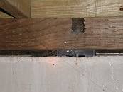 yuksit1.jpg 2005-04-16 土台の材木に空いている穴は、アンカーボルトが顔を出すために空けられたものです。でも本来は上から見た場合、材木の真ん中に空けることになっているものなので横から見えてはいけないんですけどね。またさすがに5年目にもなってクモの巣が張っています。 |