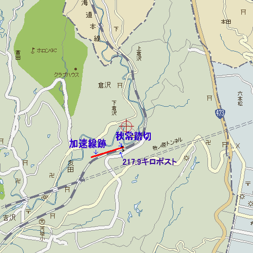 加速線跡の途中から金谷方を見る。足元にはバラストも・・・