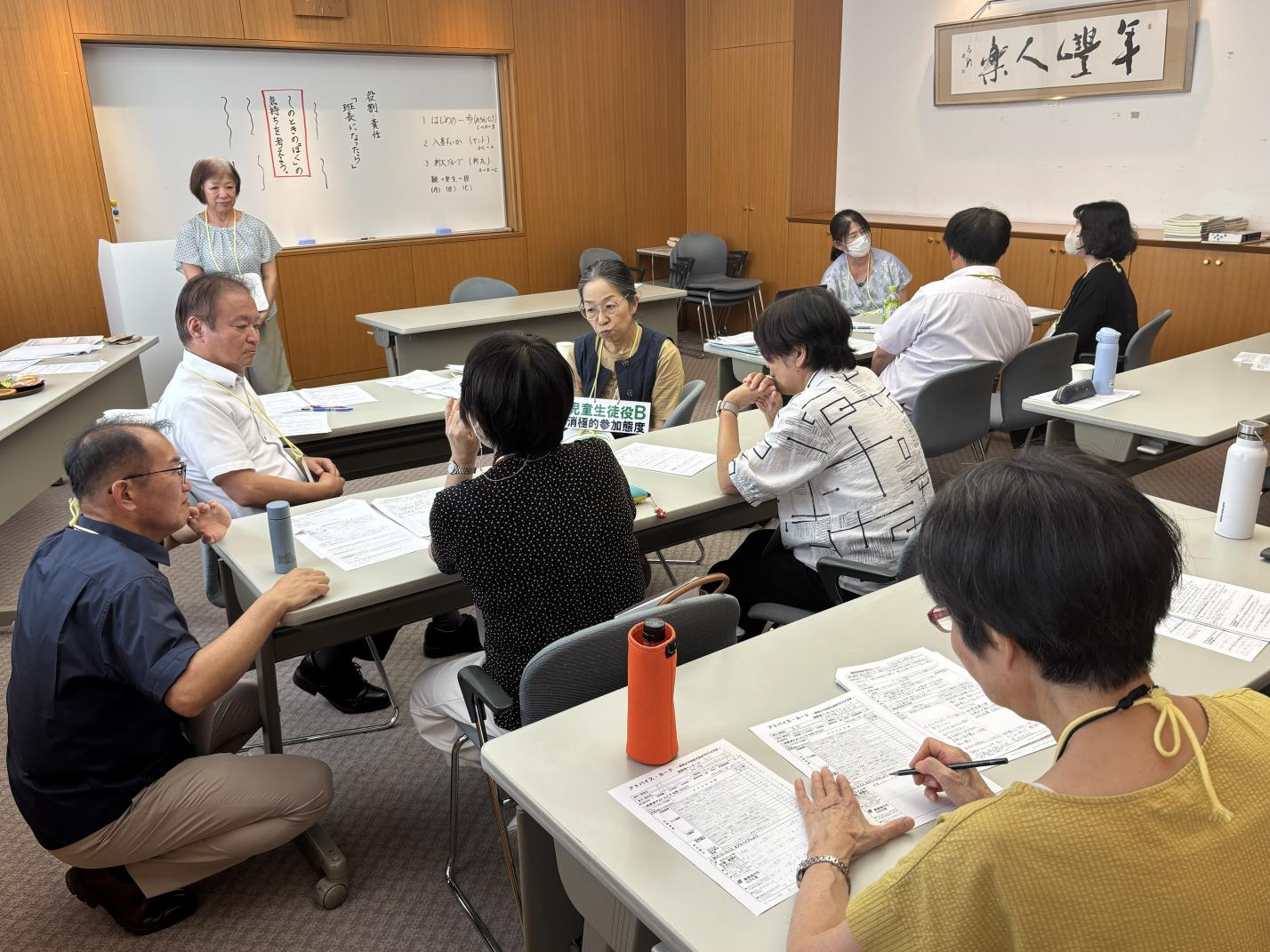 今回の研修では、対話のある授業みらい研究所副所長の島田先生が講師となり、グループ学習による学級づくりの進め方や主体的・対話的で深い学びをつくる授業づくりの方法について学びました。本研修では、対話のある授業づくりを学んだ県協会の役員たちが、スタッフとして参加して研修をサポートします。演習では、参加者が小グループとなり、知恵を出し合って授業計画を立て、教師・児童生徒・観察者という役割に分かれて模擬授業を行いました。みなで支え合い、学びあうことのできる充実したワークショップとなったようです。