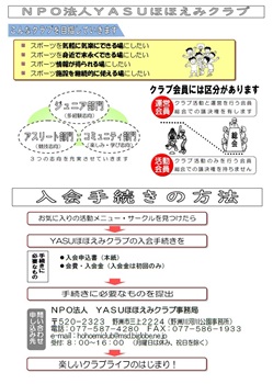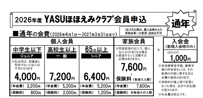入会案内(通年会員)|NPO法人YASUほほえみクラブ