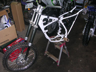 カッコイイのを作ろうと思い、また始めちゃいました。せっかくやるんならと、ヤフオクでCR80のフレーム(95