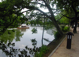 堀川。 松江城を囲む堀川は 生活用水であり漁場でもあった 一時間の水都遊覧で 十六の橋を潜りぬける面白さ |