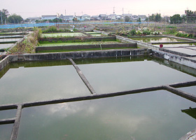 金魚池。 近鉄郡山駅から南西に広がる のどかな金魚の養殖風景 |