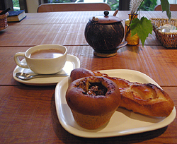 国産小麦とおいしい豆で作る無添加手作りパンのお店。 オーナー夫妻が丁寧に焼き上げた商品が並ぶ店内は 温かな空気に満ちていて、ふっと心が軽くなるよう。 オリーブの木やハーブが育つ小さな庭が見える場所が 喫茶コーナー。ホカホカのパンを食べられる幸せを ぜひ体験してみて。ちなみに店名の由来は御主人の ひらめきだったそうで…。 |