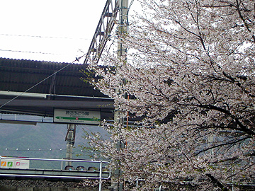 ■ JR勝沼ぶどう郷駅前の桜も満開。 駅周辺の桜は甚六桜と呼ばれ、地元の人達に 親しまれています。 |