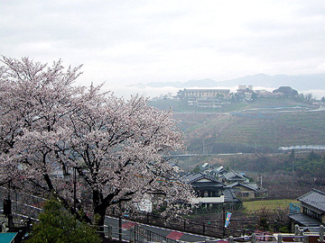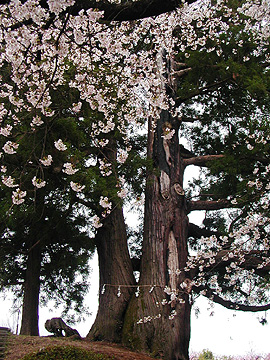 ■ 花鳥山の一本杉の周りでは桜が満開でした。 標高485m地点です。 |