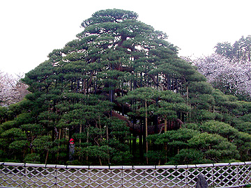 ■ 神代桜から近い萬休院に舞鶴松と呼ばれる 樹齢450年のアカマツがあります。 国指定天然記念物の名木です。 |