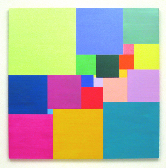 Twenty-one different colured squares on the square ground