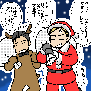 案の定サンタさんを待ち伏せしてた子供たちに 見つかるダメサンタ。 この年を境に、MI6のサンタ活動は中止になりました(笑)