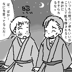 お題その25.浴衣 翌朝。 今までに一万回は使われたと思われるネタ。 ちなみにgucciは、旅館で朝起きたら帯すら 残ってなかったことがあります。 まあ、パジャマを着て寝たのにぱんついっちょに なってたこともある(暑かったので脱いだらしい)ので 浴衣のせいじゃないかもしれませんが(笑)