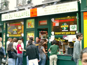 疲れていたし、おなかもすいていたが、ガイドブックで見たユダヤ人のサンドイッチ「ファラフェル」が食べたかったので、地下鉄に乗ってマレへ。
