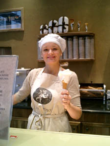 歩いていて甘いものが欲しくなったので、アイスクリームやでレモンシャーベットを買う。