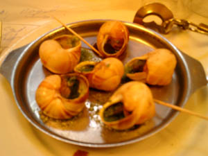 前菜に、私はエスカルゴのガーリックソース、