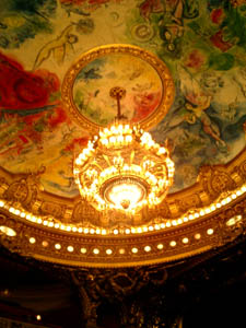 それによると、天井の絵はマルク・シャガールによるもので、当時の舞台の演目のいくつかを描いたものだそう。