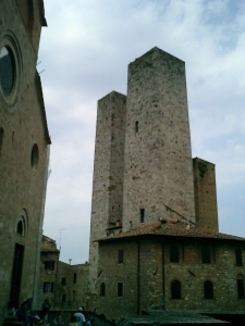 ガイドブックによると、中世の、とある時代に、お金持ちがこぞって高い塔を建てたがる流行があり、その後しだいにそれは廃れ、塔は壊され新しい建物になっていった、しかし人の少なくなったサンジミニャーノでは、塔を壊すことも出来ず、そのまま残されていた…ということで、結構な数の塔がある、らしい。