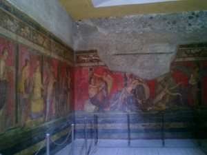 (ご存じない方のために説明しておくと、ポンペイは2000年前にベスビオ火山の噴火によって突然、そこに住む人たちとともに火山灰の下に埋まってしまった町で、20世紀になって発掘され始めたんだそう)
