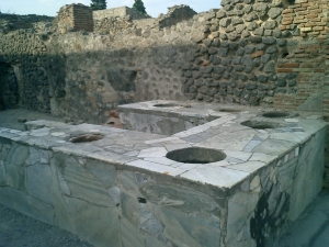 ★ある程度の大きさの家は、必ず真ん中に吹き抜けがあって、床に水のたまるスペースが作ってある。いいなあ、家の中に水のある生活。風通しもよくて、豊かな暮らし。2000年前のポンペイに住んでみたい。奴隷かもしれんが…(笑)