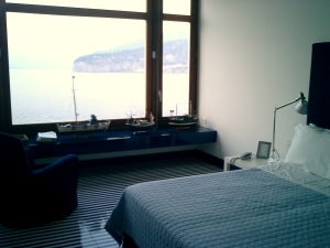 壁は大きな窓になっていて、ソレントの海が真下に見える。窓際には船の模型やインテリアの本。