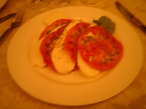 前菜にカプレーゼ(トマトもモツァレラも、めちゃめちゃ味がこくてウマ~イ!)、