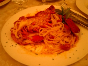 メインにロブスターのパスタ(まるごと一匹のロブスター。出汁最高!)。