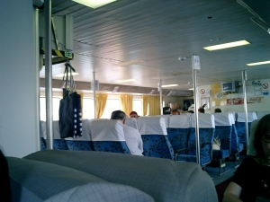 上のデッキへ上がることもできるけど、上のほうが揺れが大きそうと判断し、下の部屋へ。