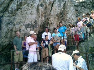 え、え、いいの?抜かしちゃっていいの??と戸惑っていると、ドライバーは、列の先頭にいた洞窟の係員に声をかけ、なんと私たちを先頭に割り込ませてしまった!