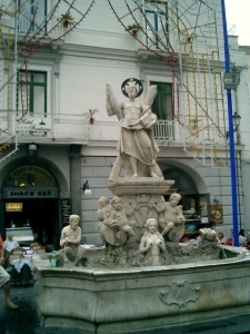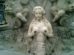 去り際にもう一度教会と記念写真を撮り、教会前の広場の変な噴水(女の人の乳首から水が出てる)とも写真を撮る。