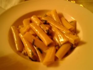 前菜はとってもおいしかったけど、マカロニはちょっと塩気が強くて、全部は食べられなかった。