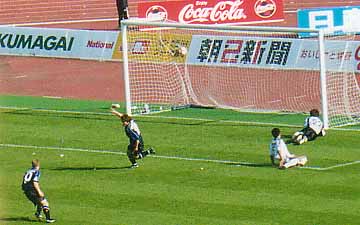 22分、遠藤のロングパスが右サイドへ、ビウタが北澤をかわし中央へ折り返したところへ、二川がつめてゴールへ押し込み3点目、二川のJリーグ初ゴール。