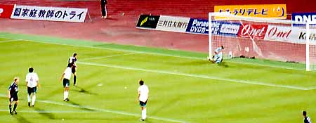45分、稲本が自陣からロングシュート、GKキャッチ。