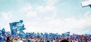Half Time の Laser & Dancing SHOW の後、松下自慢の照明が操作ミスの為つかず、30分近い Half Time となりましたが(この為、TV の放送枠には入りきれなくなった)、場内はそんな事おかまいなしに暗闇の Laser光線の中でガンバボーイをお立ち台に上げた JULIANA'S OSAKA と化していました。後半のロスタイムに入ると、リナルドの音頭でサポーターの興奮は最高潮、酷評の中記念すべき一戦をみごと勝利で飾りました。