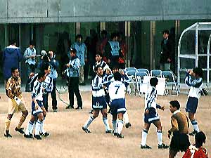 平岡が負傷して木場に交代してから、サイドがすごく締まったように、思えた直後圧巻でした。木場がボールを奪い、左サイドの小島にパス、中を見てセンターリング、小島があげた瞬間、私は入ったと確信したました(^^)!!やはりゴール前にエムボマヘディングでゴール!!