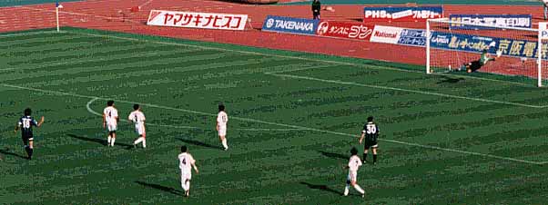 31分、飛び出したフリエGKがパンチングしたのは、ペナルティエリア外。そのFKのチャンスに森下がゴール隅に希に見る(^^;ダイレクトシュートを決め2点目。