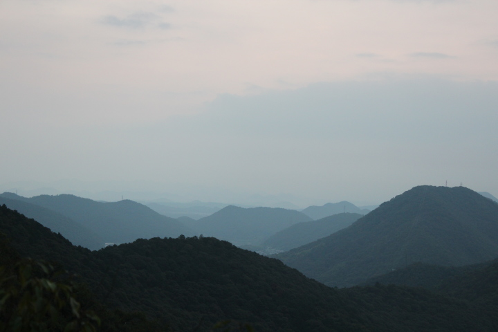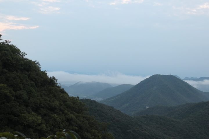 | 今朝(R7/8/25)の金華山上空は曇り空、頂上の温度計は28.5℃を指しており蒸し暑い朝でした。日の出を待ったのですが今朝もお出ましにはなりませんでした。、 | |