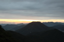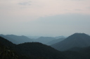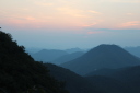 | 今朝(R7/8/20)の金華山上空は晴れ、頂上の温度計は27℃を指していました。日の出は山の稜線にかかった雲が高くまであり時間がかかりそうでしたので諦めて下山しました。 | |