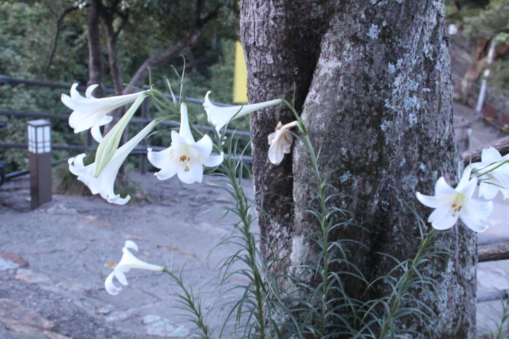 | 今朝(R7/8/18)の金華山上空は晴れ、頂上の温度計は26℃を指していましたが、比較的さわやかで、秋の気配を感じさせてくれました。頂上の樹の根元からからゆりが顔を出し、花をつけていました。 日の出は久しぶりに山の稜線からでした。 朝の星座が奇麗で、金星・木星・お月様が一直線に並んで見えました。 |