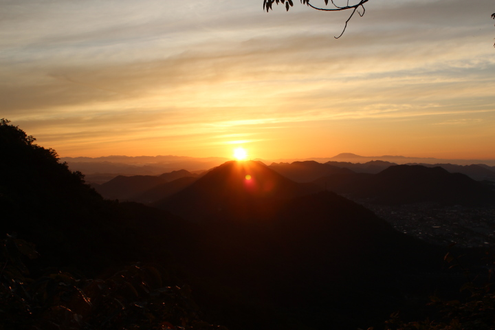 | 今朝(R7/8/3)の金華山上空は晴れ、頂上の温度計はこの夏最高の27.8℃を指していました。日の出は山の稜線にかかった雲の上からのようでした。 | |