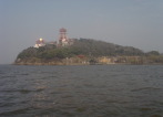 ちょっとボロい船で太湖の遊覧。写真はガイドさんが三山塔と言っていたような気がする。