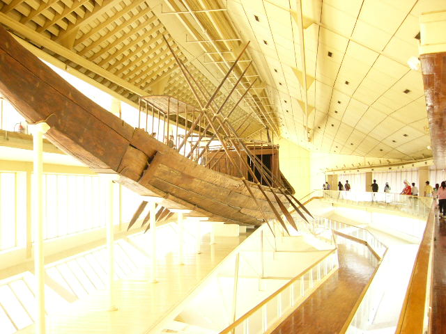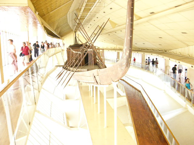 | 1954年、バラバラに解体された1,224枚のレバノン杉で出来た船の外板材が発見され、苦労の末に組み立てられたモノを展示。 水には浮かばない設計だとガイド。 船首から船尾まで一枚板のところもあり、超デカいレバノン杉を使用。 |