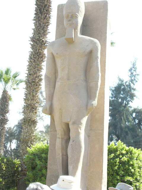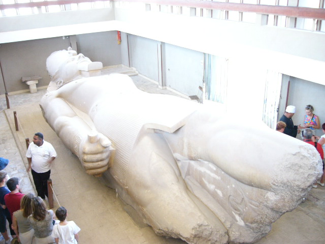 | 古王国時代の首都で、プタハ神の聖地。 ナイル河デルタ地帯の頂点にあたる土地柄、歴史に名を残す反映を続けていたが、現在はその面影も見えない小さな村となっている。 写真左:ラムセス2世の巨像。 写真左下:アラバスター(雪花石膏)製のスフィンクス |