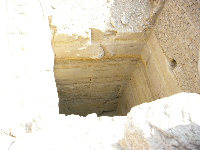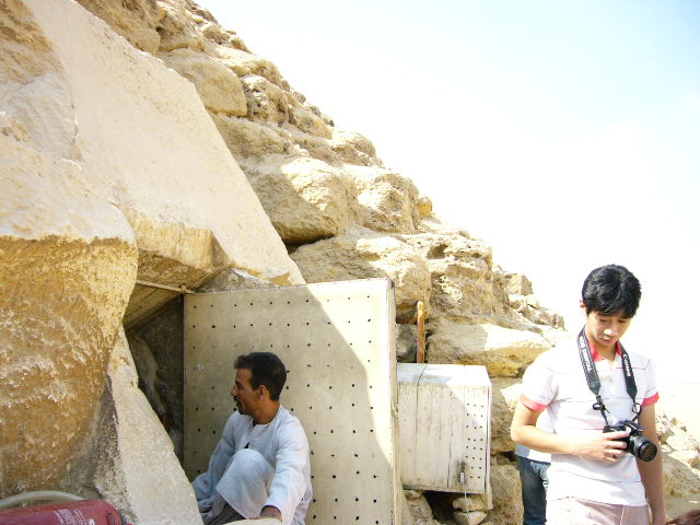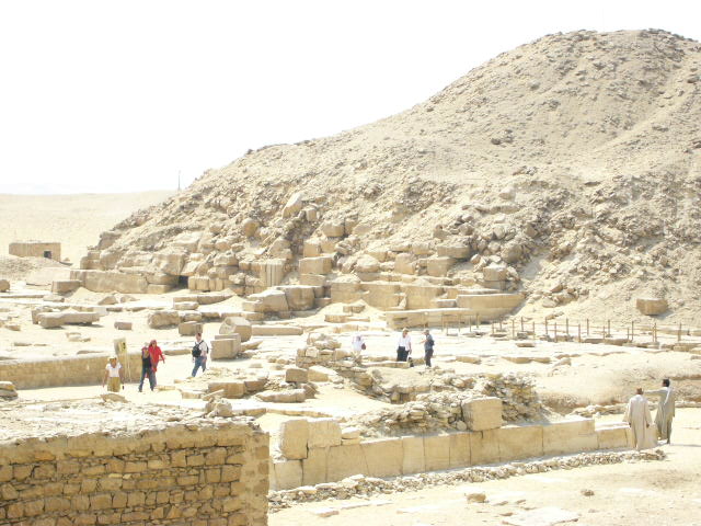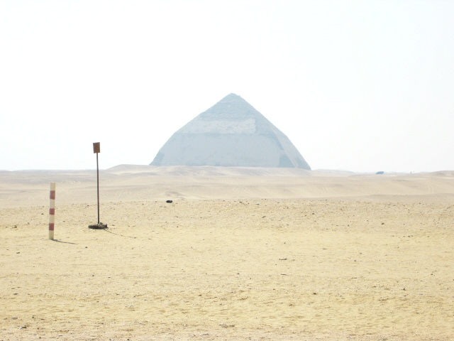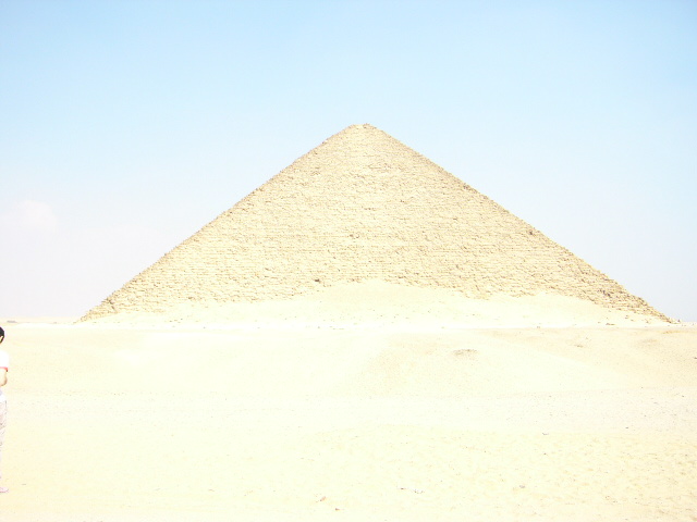 | ダハシュールの二つの大きなピラミッドは、ともにギザの大ピラミッドを造営したクフ王の父、スネフェル王のために造られた。 写真左:屈折ピラミッド:初めての真正ピラミッドで、傾斜角度が下が55度、上は44度になっている。 |