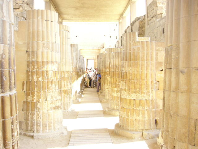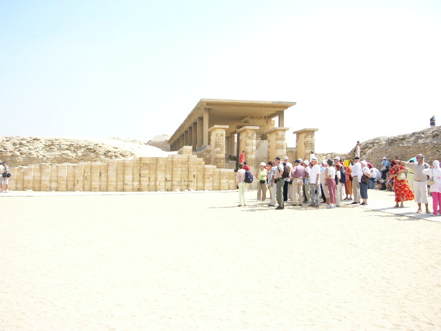 | 古王国時代の首都(メンフィス)のネクロポリス(死者の町)として築かれた。 写真左:ジェセル王(BC.2667からBC.2648迄エジプトを統治)の階段ピラミッド。 南のマスタバ墳群には、ウナス王のピラミッドがあり、ここから魔除けの呪文などが書かれている「ピラミッド・テキスト」が発見された。 |