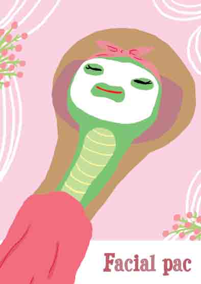 へびばあさんの もちはだの ひけつは びがんパックです。