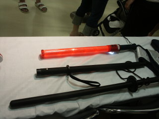 |  | ふれあい交番コーナーより4誘導棒と警棒の展示下の鍔付き警棒はパトカーに装備されています。 |